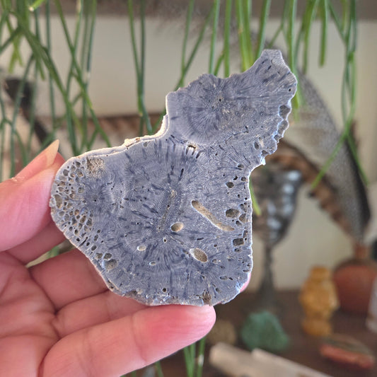 Blue Fossil Coral Slice - Medium