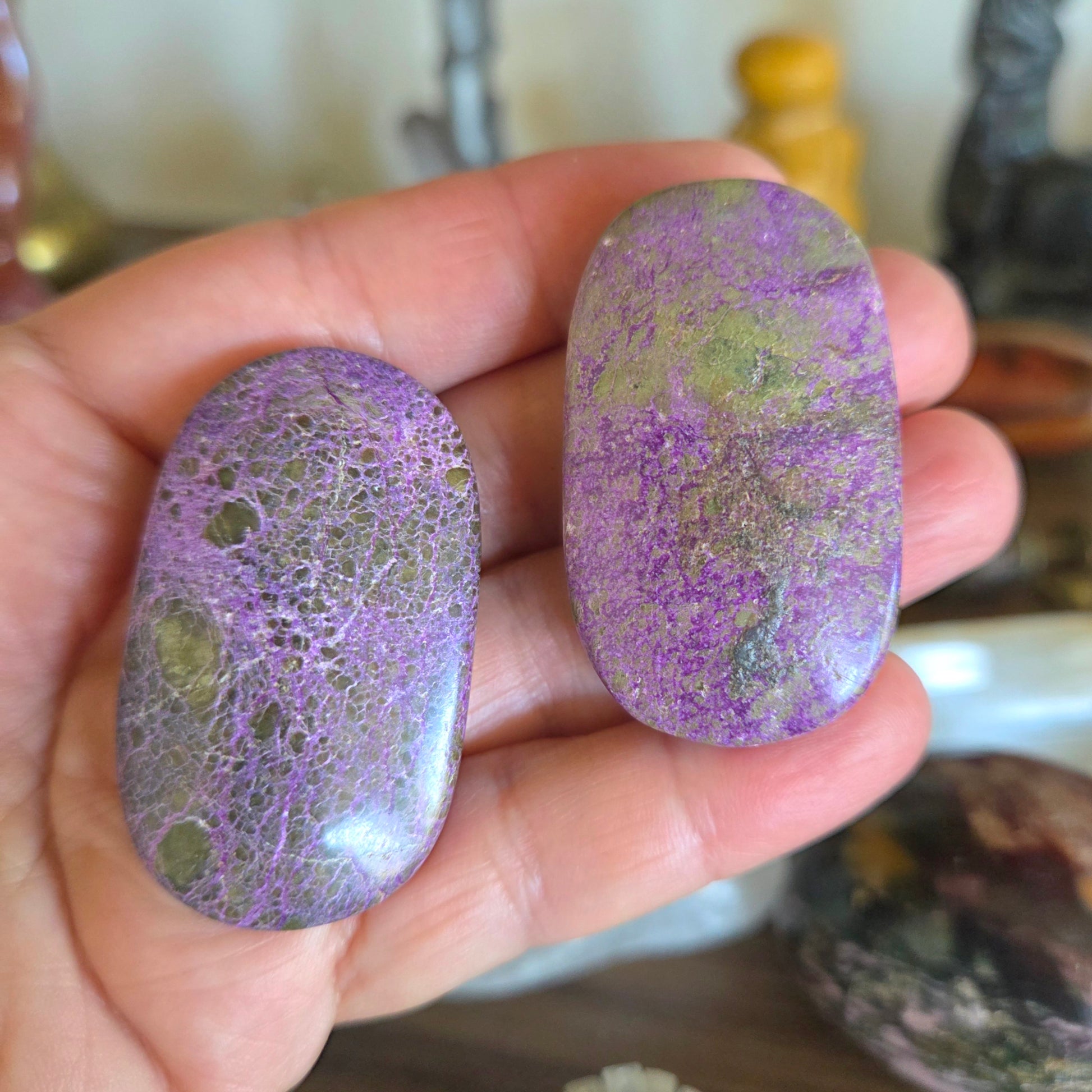 The serpentine within Atlantisite connects to kundalini energy, supporting spiritual awakening and energetic alignment, while the stichtite infuses that process with unconditional love and emotional safety. This combination makes it a beautiful stone for inner child work, relationship healing and learning to trust again after disappointment.