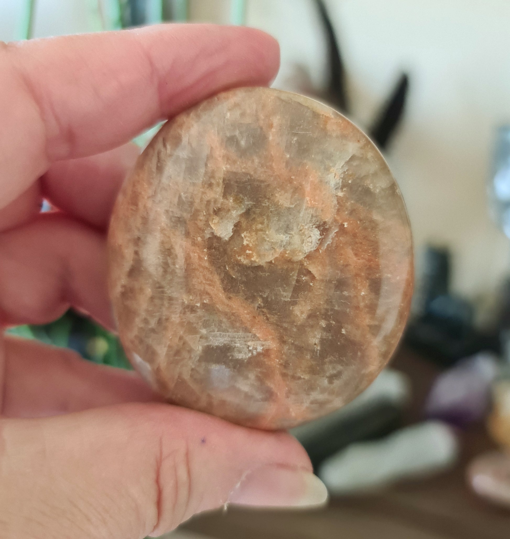 Peach Moonstone Palm Stone